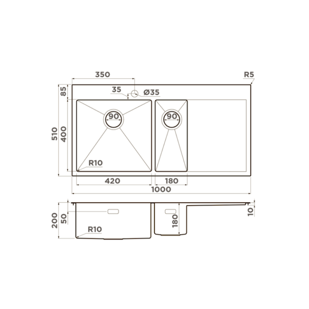 Мойка кухонная Omoikiri из коллекции Akisame 100-2-LG-L имеет размеры 1000х510 мм., изготовлена из нержавеющей стали. Форма — прямоугольная, одна чаша с отверстием для смесителя. Сифон в комплекте. Ширина чаши 42. Врезной монтаж. Имеется дополнительная чаша и крыло.