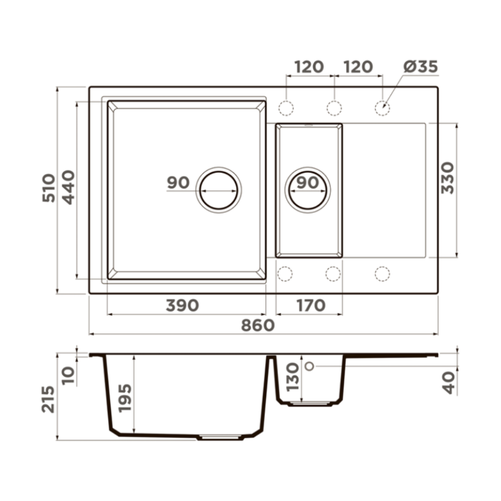Мойка кухонная Omoikiri из коллекции Daisen 86-2-BE имеет размеры 860х510 мм., изготовлена из искусственного гранита. Форма — прямоугольная, одна чаша без отверстия для смесителя. Сифон в комплекте. Ширина чаши 39. Врезной монтаж. Имеется дополнительная чаша.