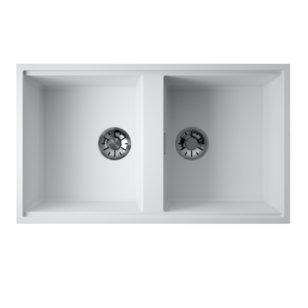 Мойка кухонная Omoikiri из коллекции Kitagawa 83-2-U-WH имеет размеры 836х488 мм., изготовлена из искусственной керамики. Форма — прямоугольная, две чаши без отверстия для смесителя. Сифон в комплекте. Ширина чаши 36,5. Врезной монтаж.