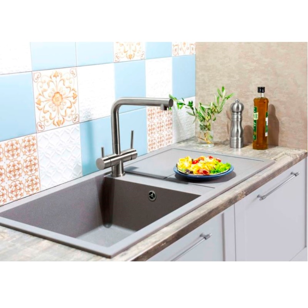 Мойка кухонная Omoikiri из коллекции Sumi 100-SA имеет размеры 1000х500 мм., изготовлена из искусственного гранита. Форма — прямоугольная, одна чаша без отверстия для смесителя. Сифон в комплекте. Ширина чаши 48. Врезной монтаж. Имеется крыло.